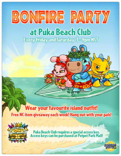 Puka Beach Club abriu suas portas! Dentro, você encontrará trabalhos especiais, itens raros de captura, uma loja exclusiva ilha, os partidos fogueira semanais todas as sextas e sábado (3 NST 21:00), e muito mais! Visite o Mall para comprar uma chave de acesso!