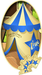 Zing Ballyhoo é um dos residentes do Pandanda, ele apareceu pela primeira vez no Pandanda no dia 6 de Julho de 2009, antes Zing Ballyhoo ficava um longo período de dois meses dando prêmios, agora de dois meses ele aparece no jogo ficando 4 semanas apenas para distrubuir prêmios aos jogadores que coletarem 10 tickets dourados, que estão espalhados jogo inteiro menos em sua Casa da Árvore, depois de ter juntado os 10 tíckets o jogador deve ir até a Treehouse Lobby e trocar por um prêmio ou 500 moedas. Os itens trocados por tickets são muitos raros e nunca mais podem voltar para Pandanda então é sempre aconselhado pegar o item do que 500 moedas.